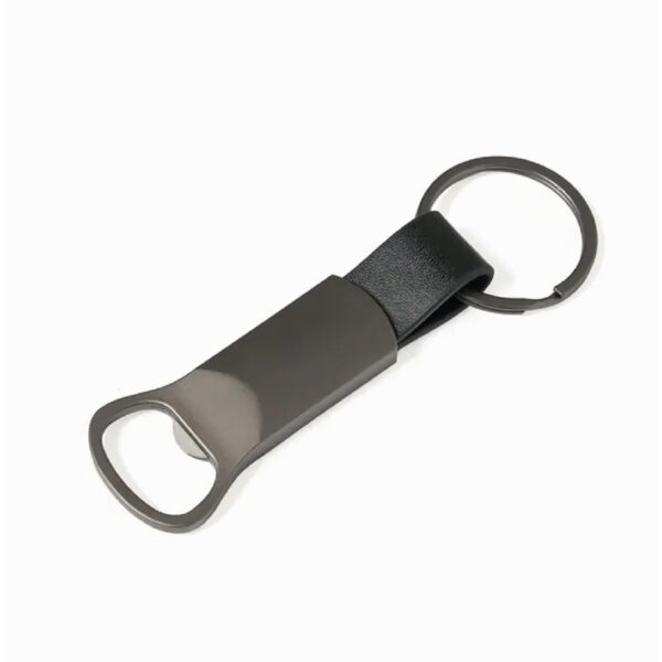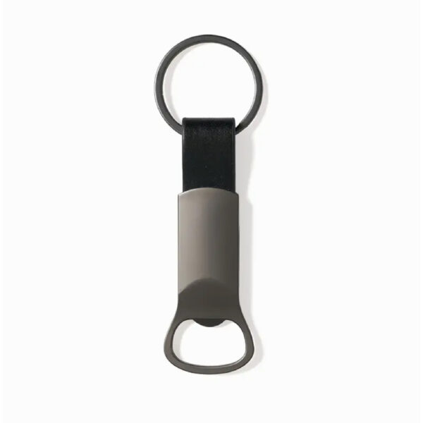 Llavero destapador compacto de aleación de zinc con detalles en PU y anillo de hierro, fabricado con materiales resistentes y duraderos. Cuenta con un diseño ergonómico y elegante en color negro, con anillo para llaves incorporado y destapador funcional, lo que lo convierte en un accesorio práctico para el uso diario. Es ideal para quienes buscan una herramienta útil y estilizada para abrir botellas en reuniones, viajes o eventos al aire libre.