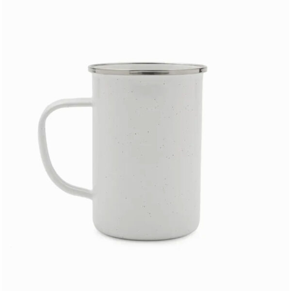 Taza esmaltada de acero inoxidable 304 con acabado en hierro y esmalte, fabricada con materiales duraderos y resistentes. Cuenta con diseño clásico y asa ergonómica que asegura un agarre cómodo. Es ideal para disfrutar de café, té o infusiones tanto en casa como en la oficina o actividades al aire libre. Capacidad: 700ml Dimensiones: 130 mm x 91 mm x 127 mm.