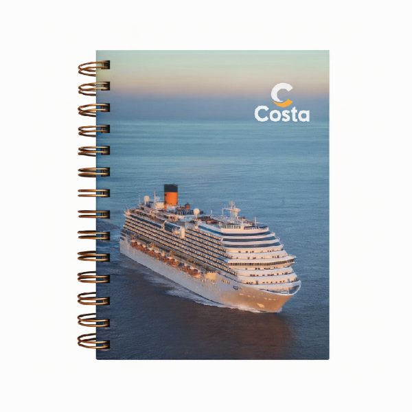 | Cuaderno anillado tapa dura de 15 x 21 cm con tapas duras de 2 mm impresas a 4/0 en papel ilustración mate, laminadas con polipropileno mate frente, interior de 80 hojas rayadas con 1 logo a 1 color en papel obra de 80 g, anillado ring wire plata y embolsado en termocontraíble.*El tiempo estimado de producción es de 45 días |