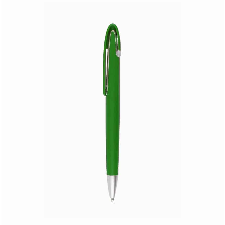 | Bolígrafo retráctil con detalles de color y puntera plateada de plástico. Utiliza tinta negra, tiene punta redonda y un grosor de 1.0 mm. |