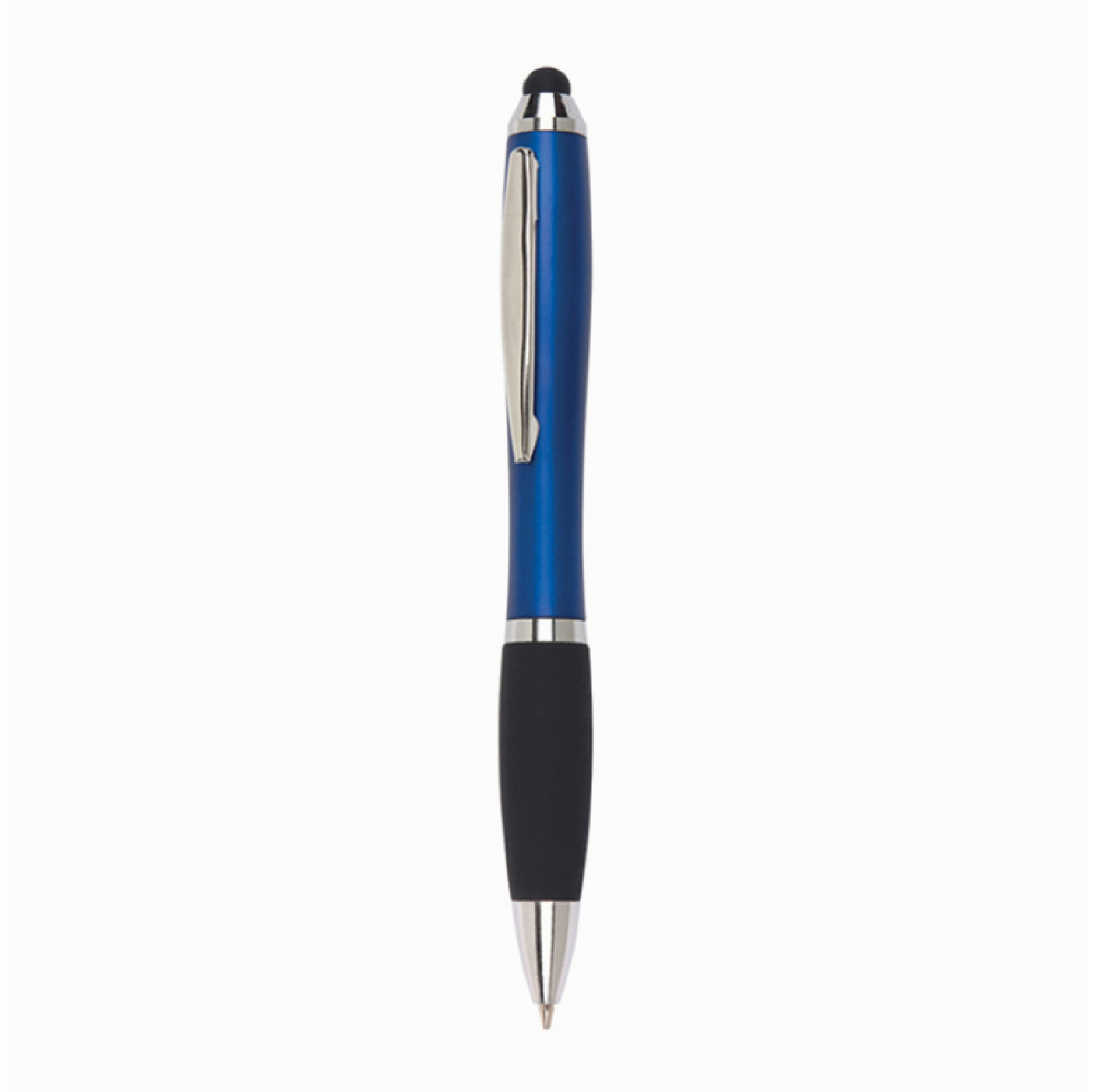 Bolígrafo plástico giratorio con detalles metálicos compuesto por clip metálicoy puntero para pantallas táctiles. Tinta negra. Consultar colores disponibles.