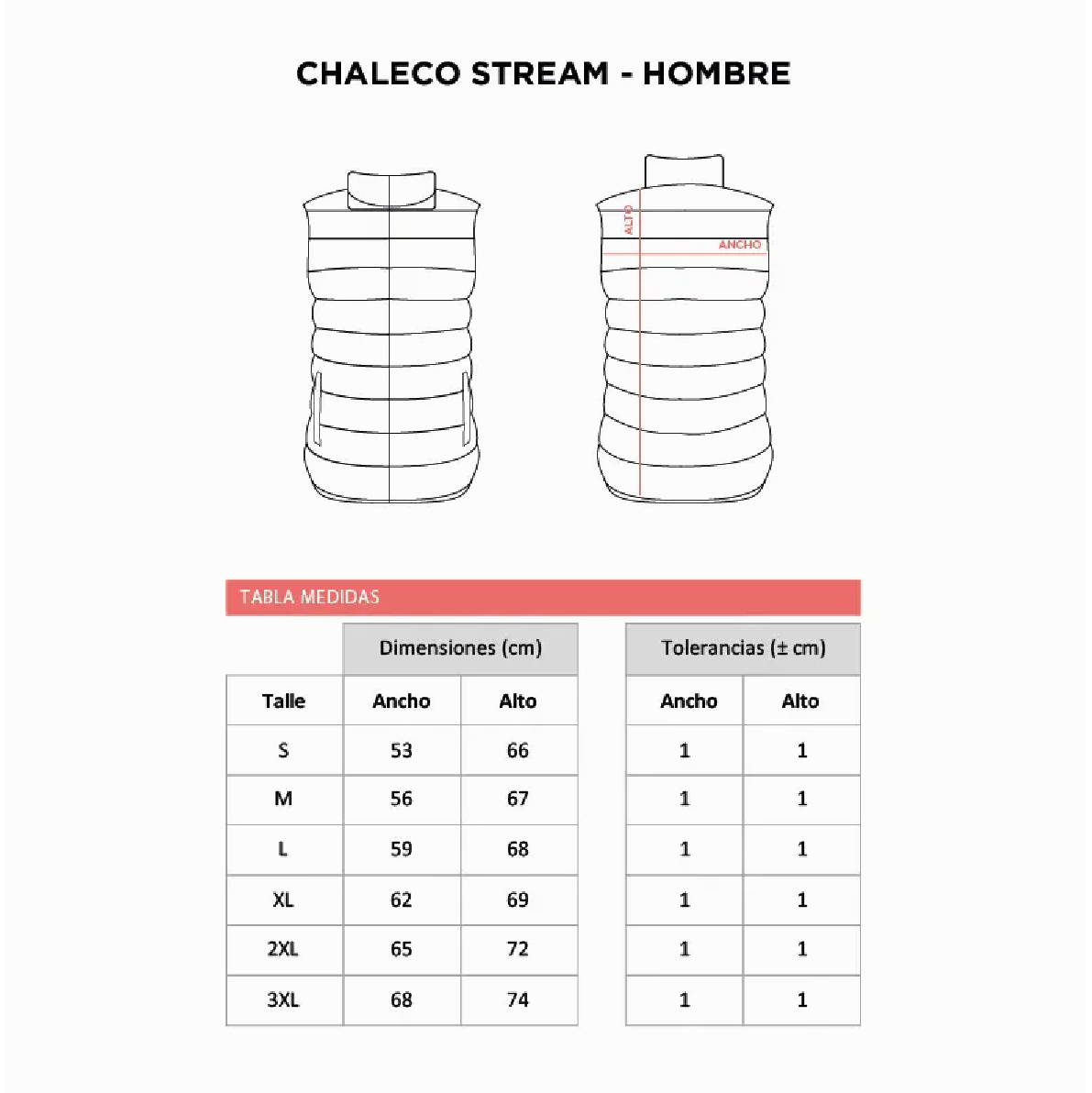 Chaleco ligero para hombre confeccionado en tafetán 280T. El tejido exterior y forro están fabricados 100% en poliéster, con relleno tipo plumón 100% poliéster. Cuenta con abertura y bolsillos laterales con cierre de nylon, cursor de metal con tirador de fantasía negro, cuello alto y terminaciones elásticas en la parte inferior y en las sisas para un mejor ajuste. Incluye bolsa para guardar la prenda. Es ideal para uso urbano, actividades al aire libre en climas frescos y como abrigo liviano para media estación. CERTIFICACIÓN: PETA-Approved Vegan y OEKO-TEX Standard 100.