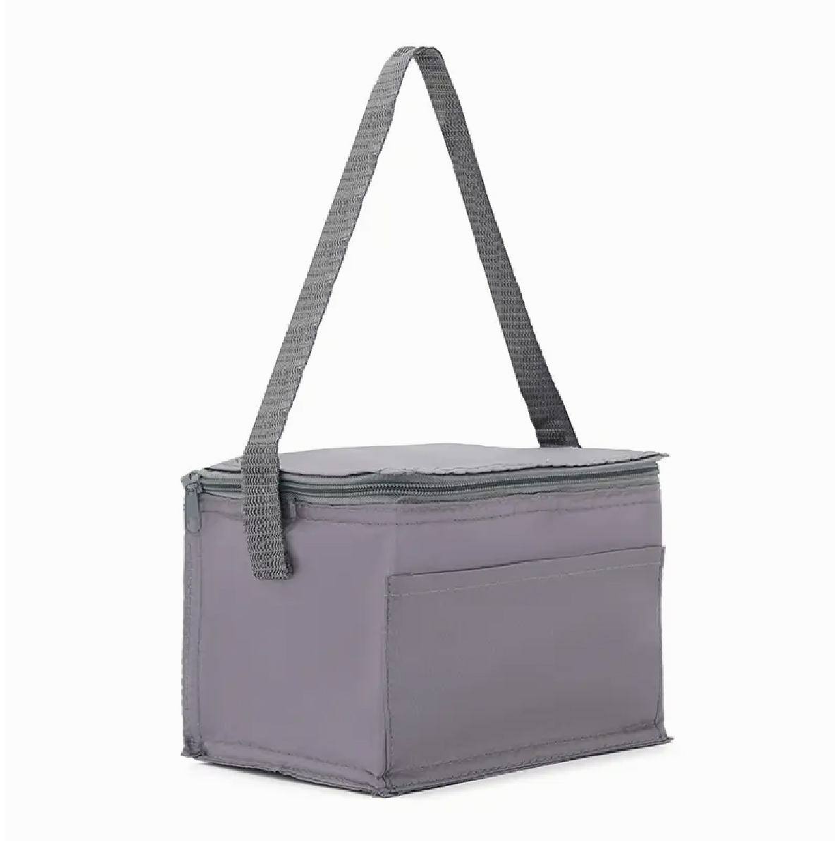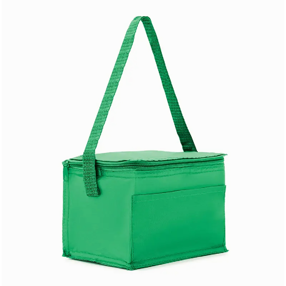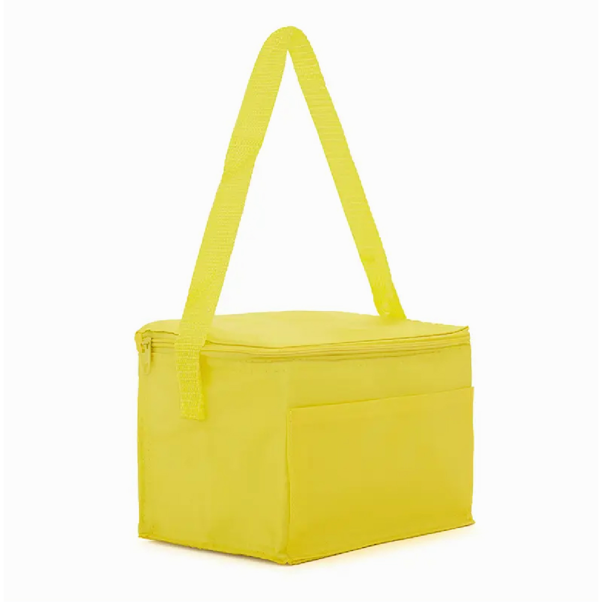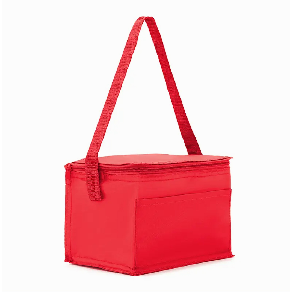 Cooler realizado en su exterior de polyester 210T y en su interior de aluminio y PE Foam 2mm. Contiene tiras para transportar, compartimiento principal superior y un bolsillo frontal. Consultar colores disponibles.