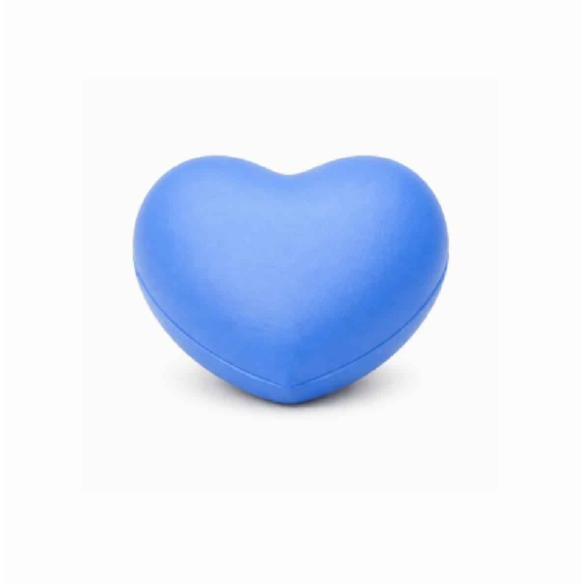 Corazón antiestrés confeccionado en poliuretano foam. Color rojo o azul. Sus medidas son 65 mm de ancho y alto, 30 mm de profundidad. Incluye 1 logo 1 color