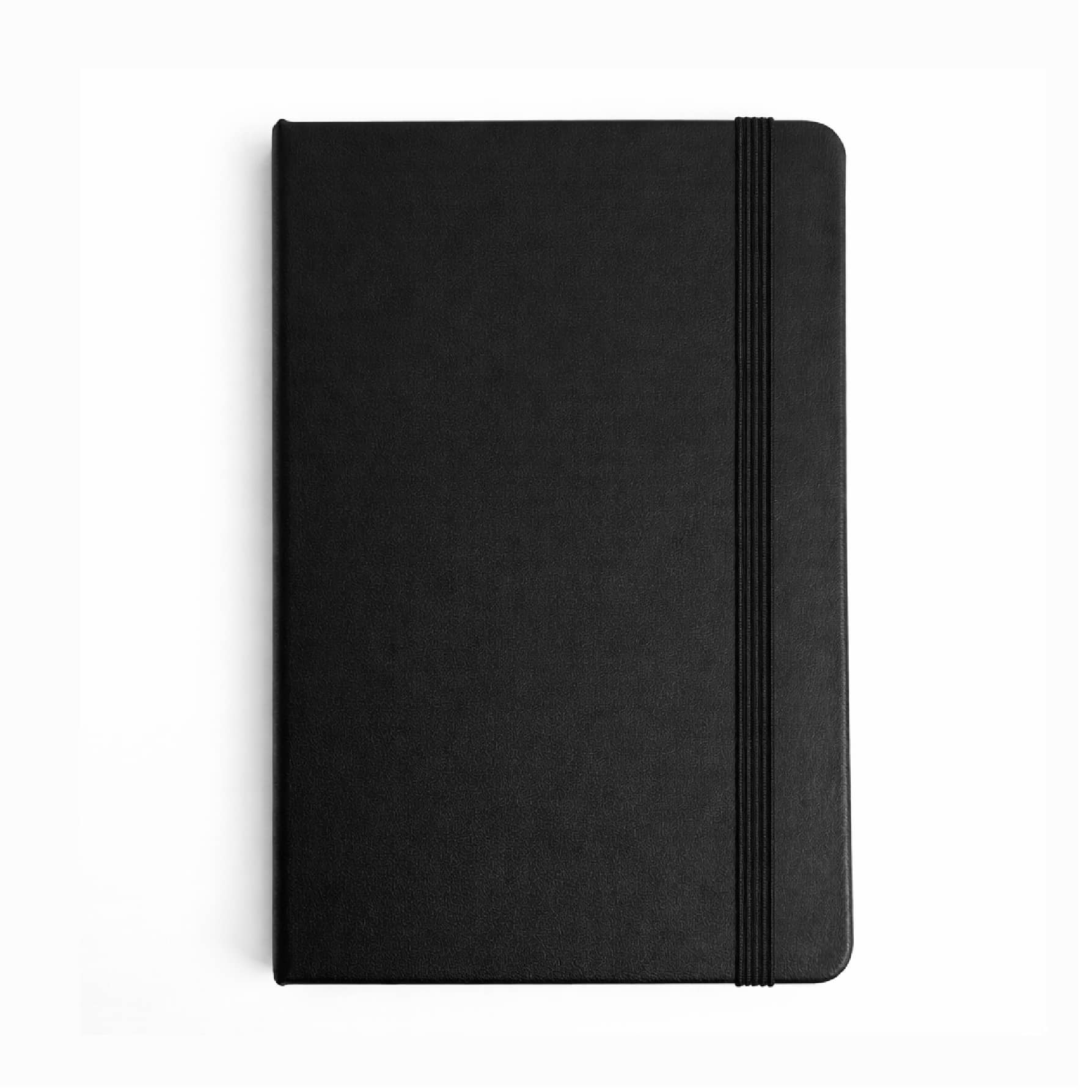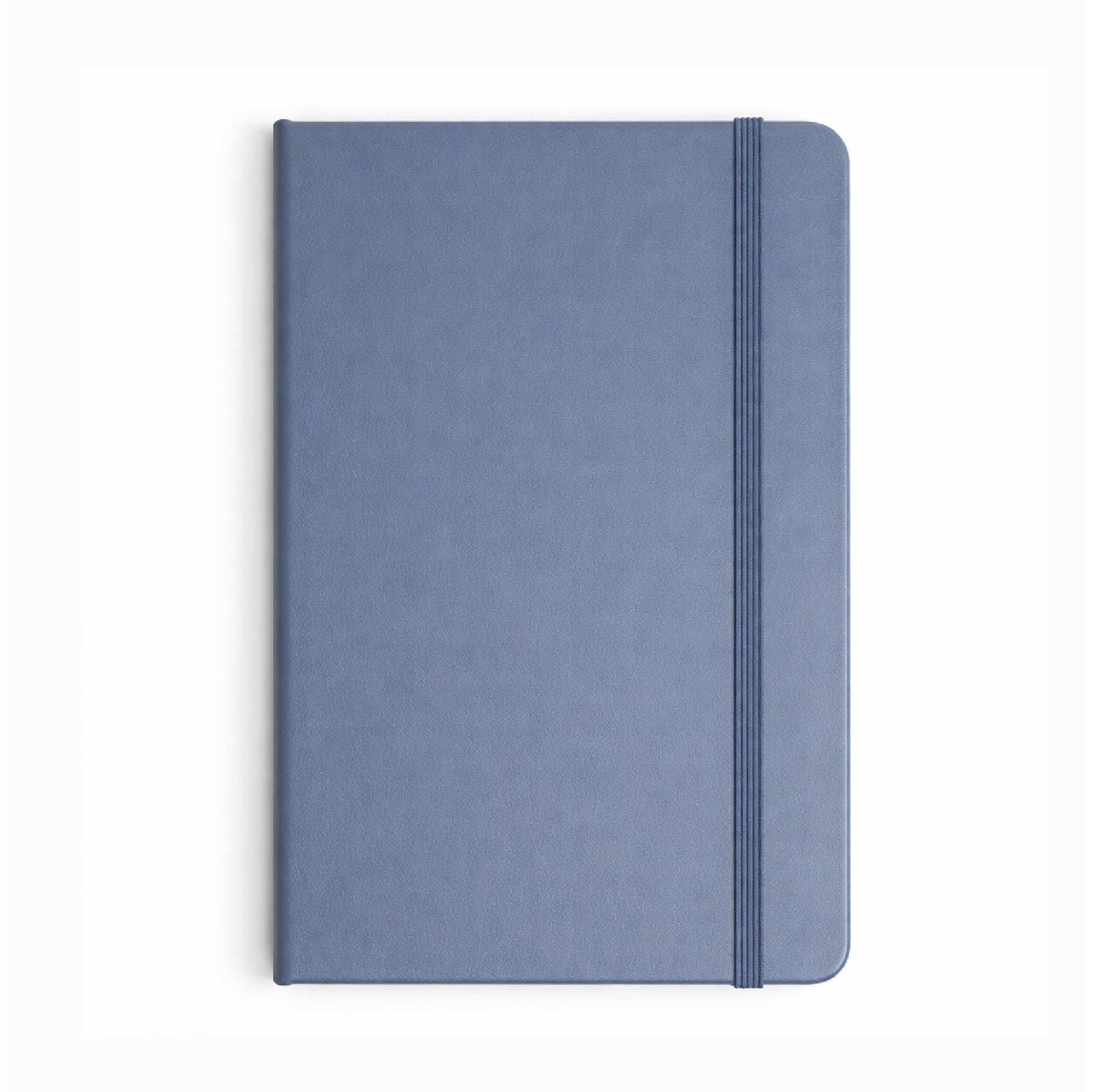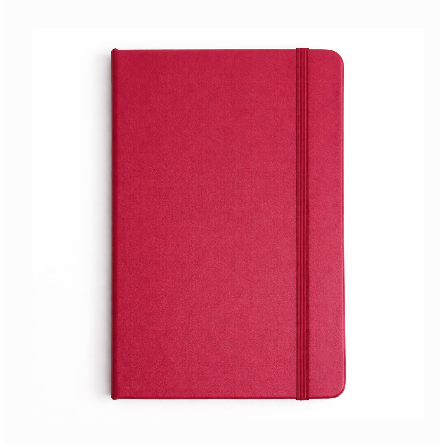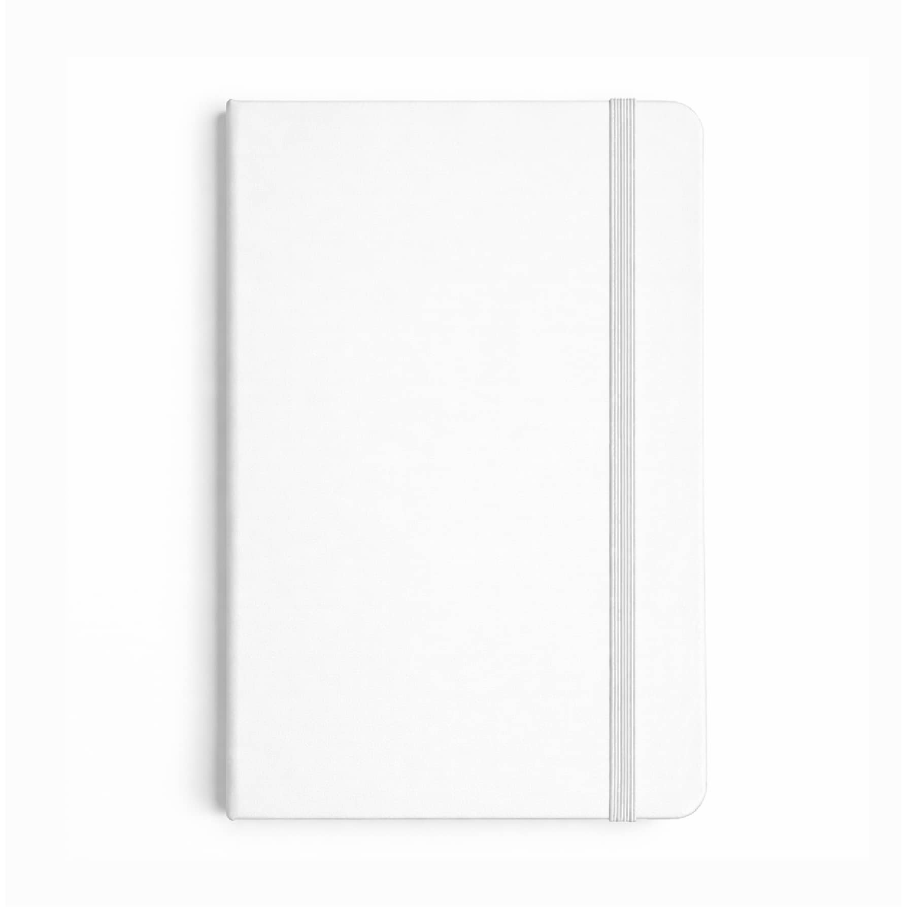Cuaderno / libreta Cosido en cuadernillos. Contiene 96 hojas (192 páginas) de papel marfil opaco rayado o liso. Tapa forrada en tela moleskin. Elástico vertical, bolsillo portapapeles, cinta señaladora y esquinas redondeadas. Sus medidas son 13 x 21 cm.