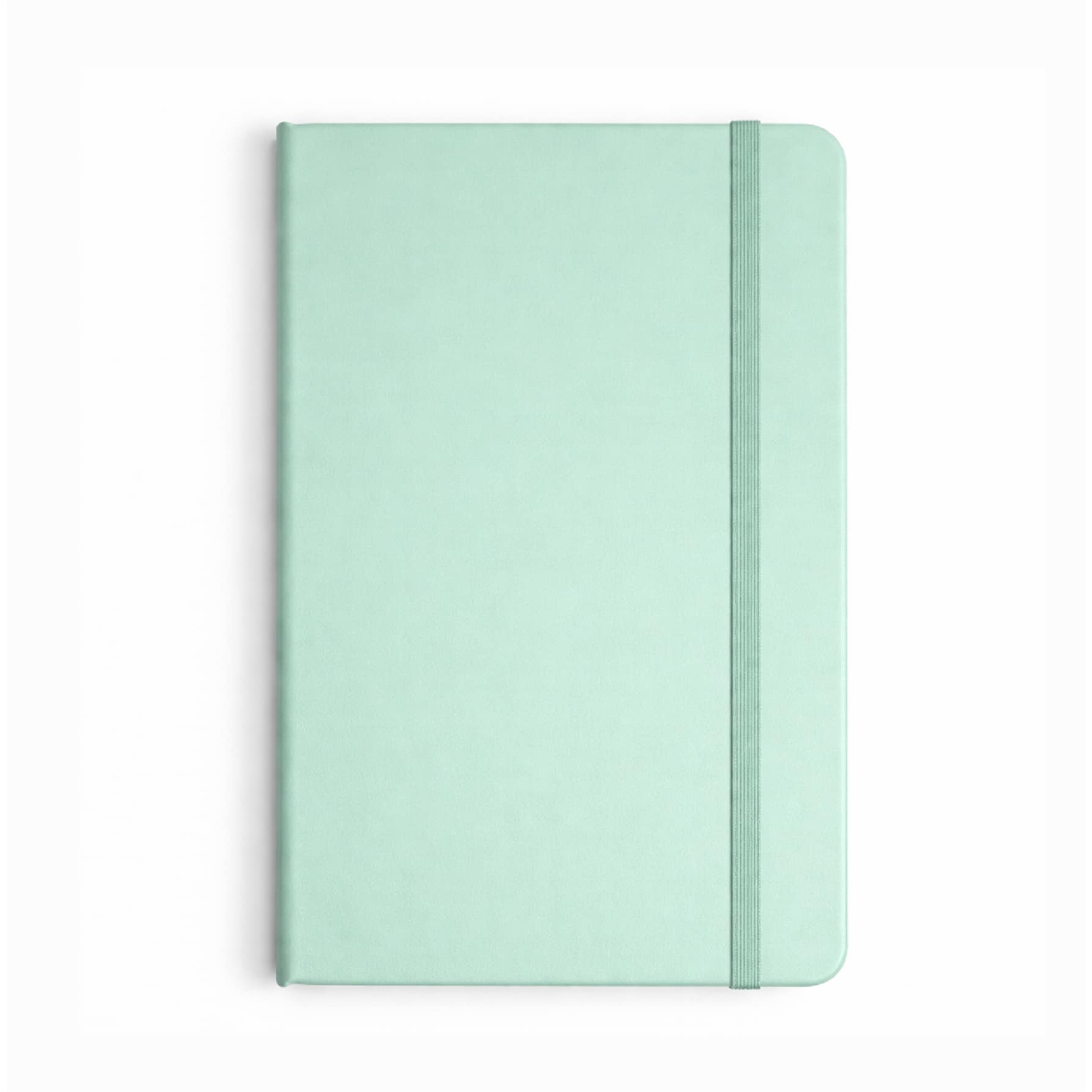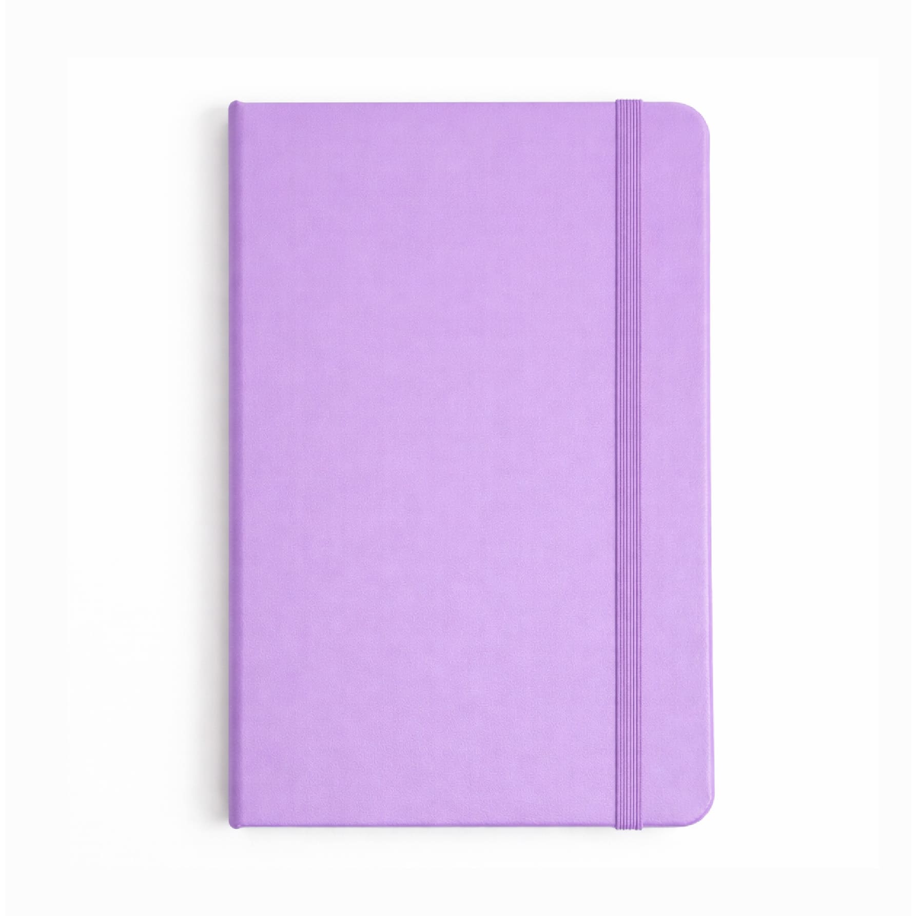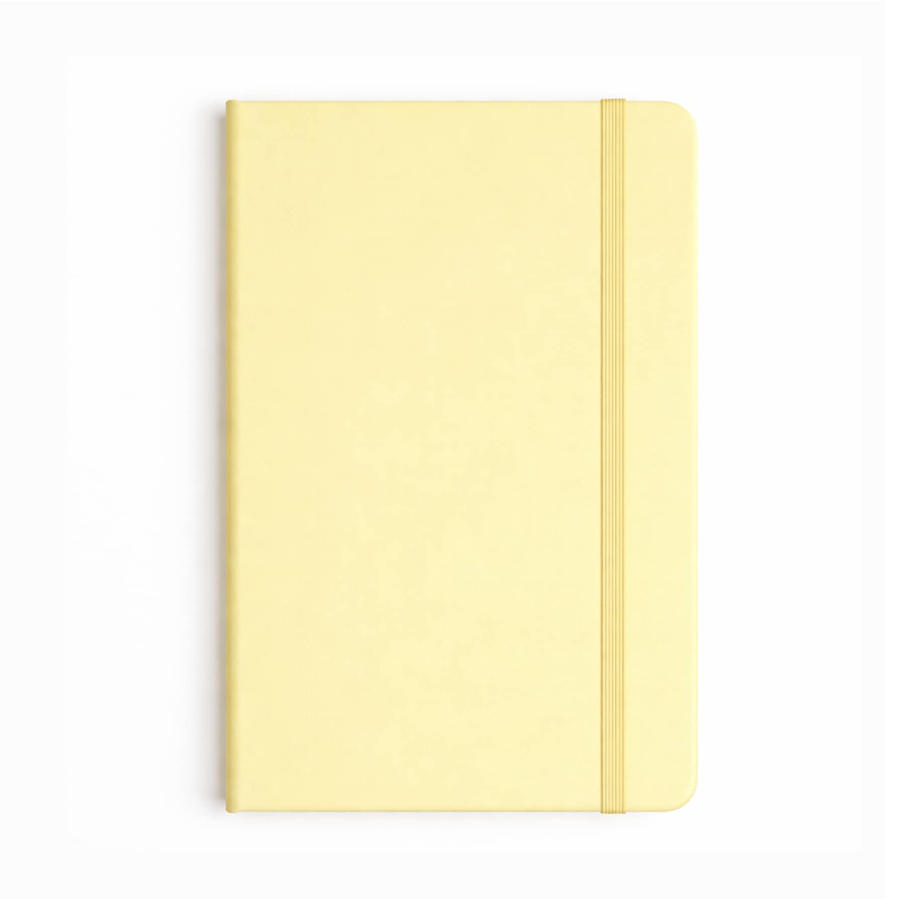 Cuaderno / libreta Cosido en cuadernillos. Contiene 96 hojas (192 páginas) de papel marfil opaco rayado o liso. Tapa forrada en tela moleskin. Elástico vertical, bolsillo portapapeles, cinta señaladora y esquinas redondeadas. Sus medidas son 13 x 21 cm.