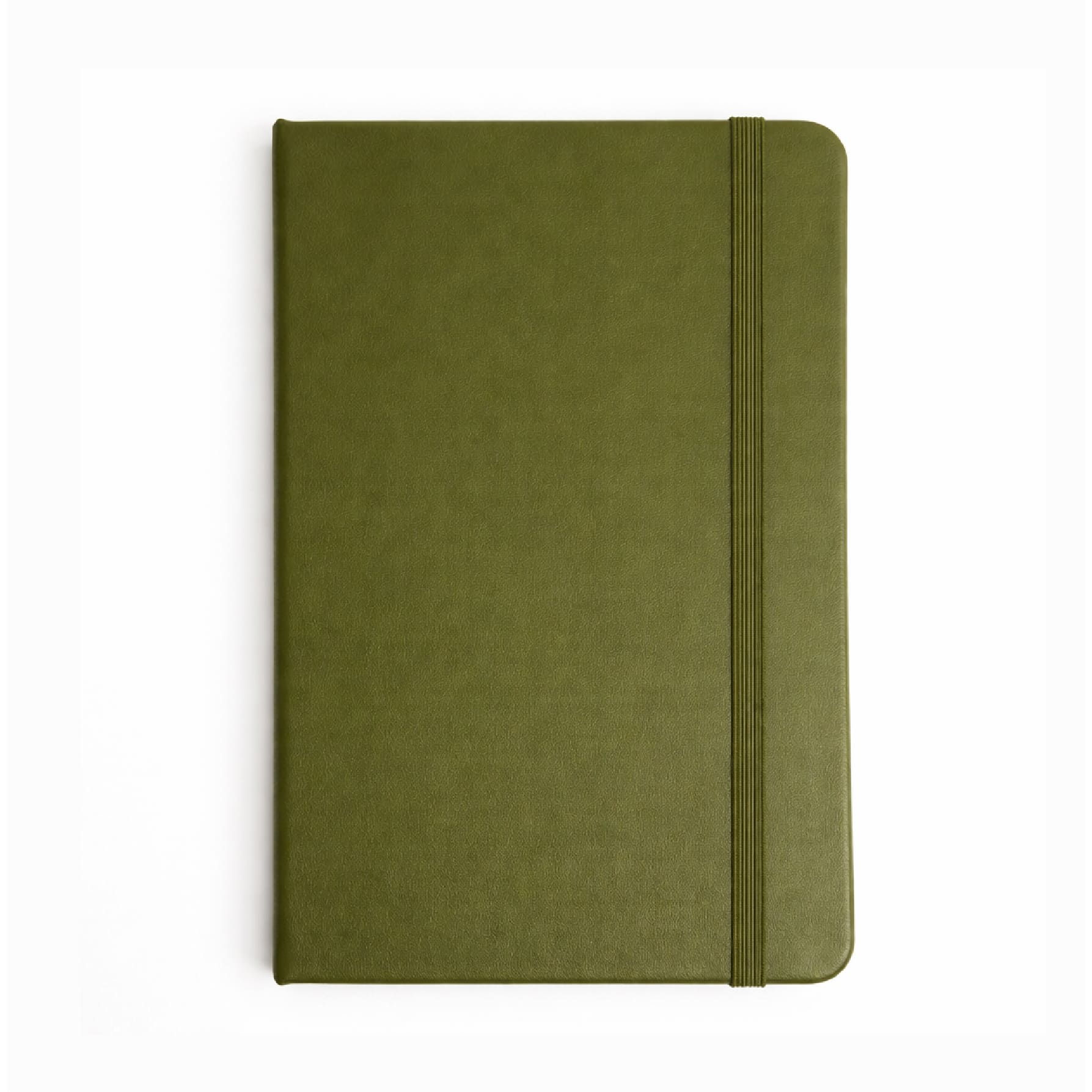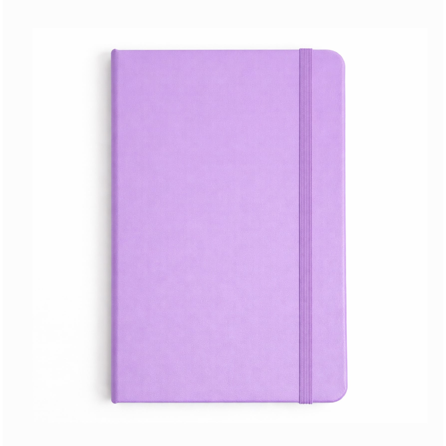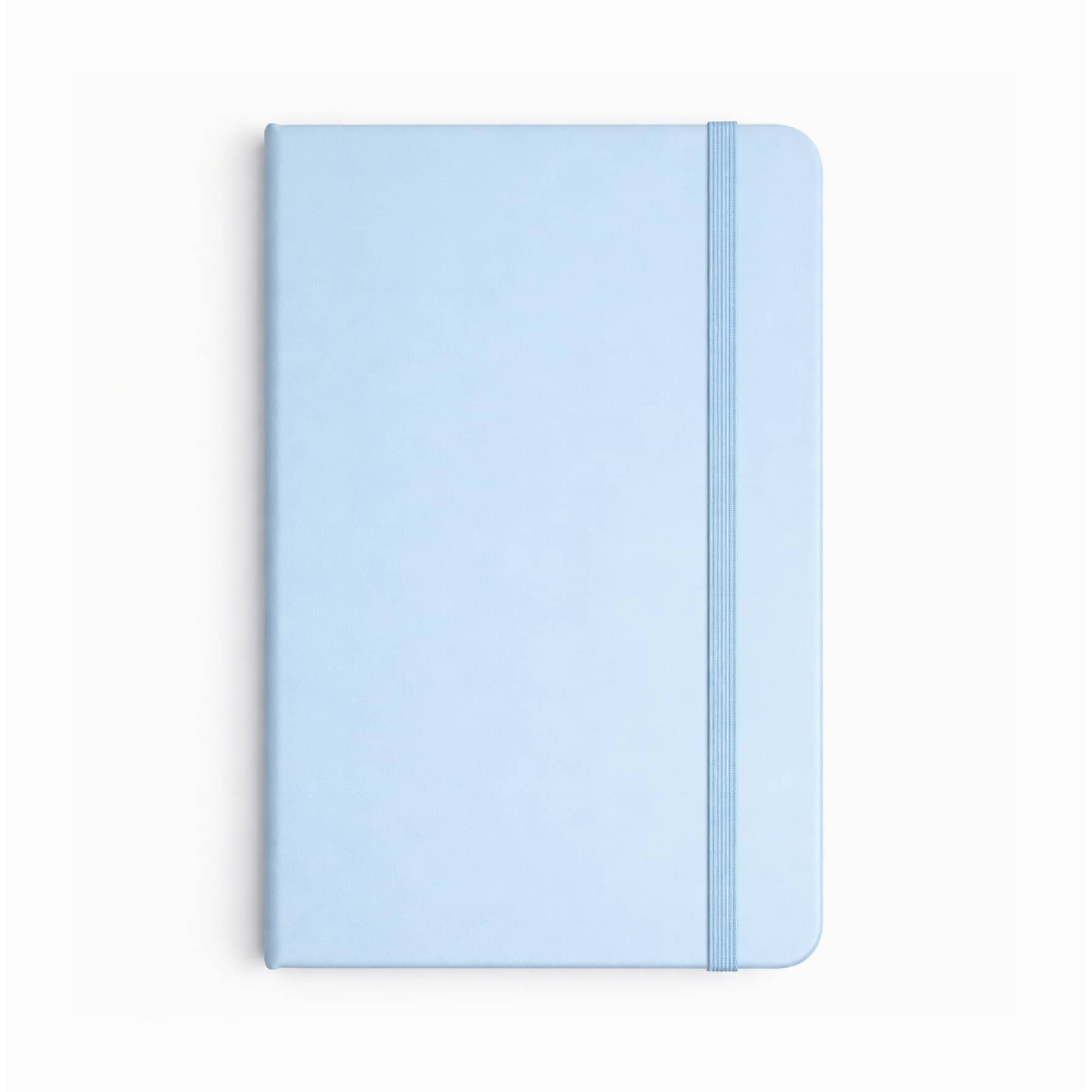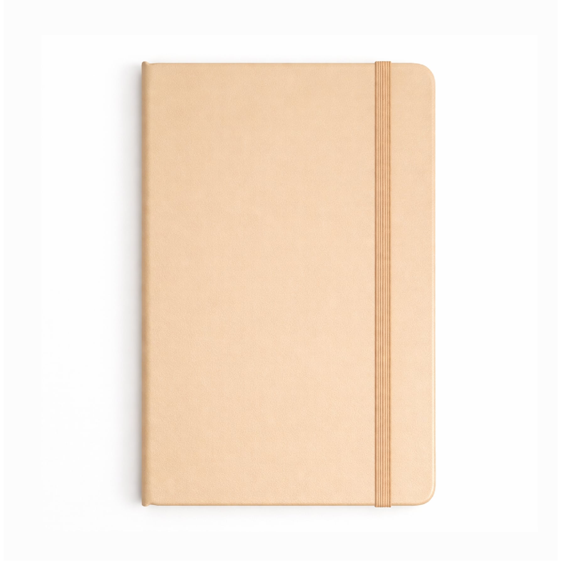 Cuaderno / libreta Cosido en cuadernillos. Contiene 96 hojas (192 páginas) de papel marfil opaco rayado o liso. Tapa forrada en tela moleskin. Elástico vertical, bolsillo portapapeles, cinta señaladora y esquinas redondeadas. Sus medidas son 13 x 21 cm.