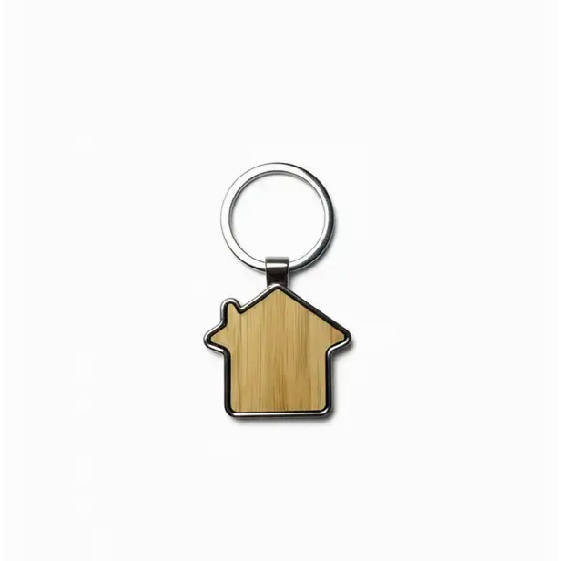 Llavero metálico con silueta de casa y bambú. Fabricado en aleación de zinc y bambú en tono natural. Cuenta con anilla resistente y diseño de casa, ideal para branding. Es ideal para inmobiliarias, constructoras, promociones y obsequios corporativos. Dimensiones: 41 mm x 4 mm x 70 mm.