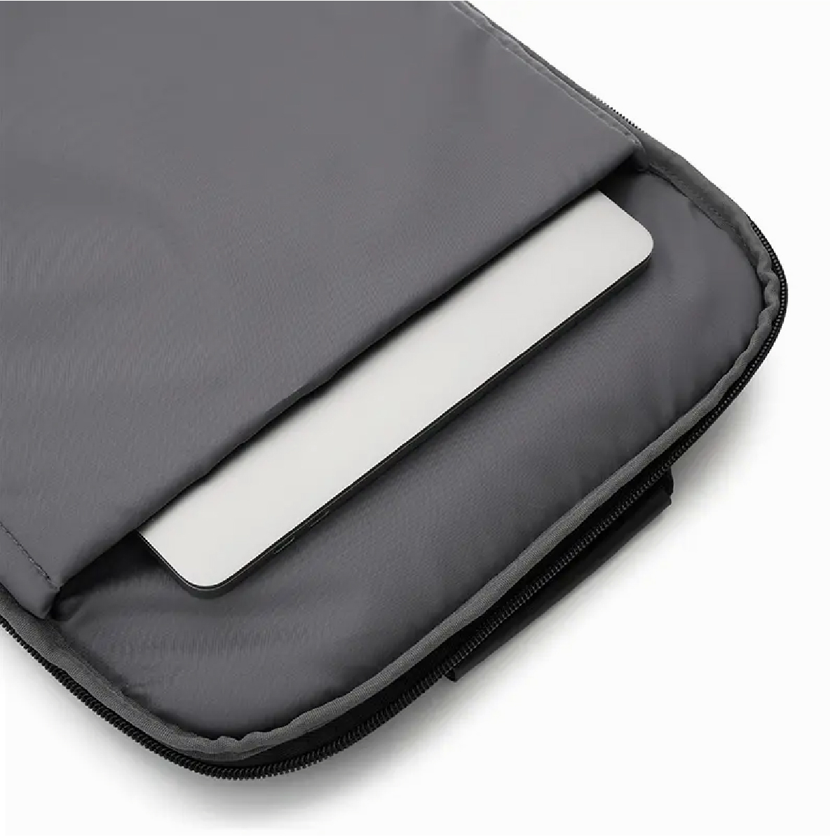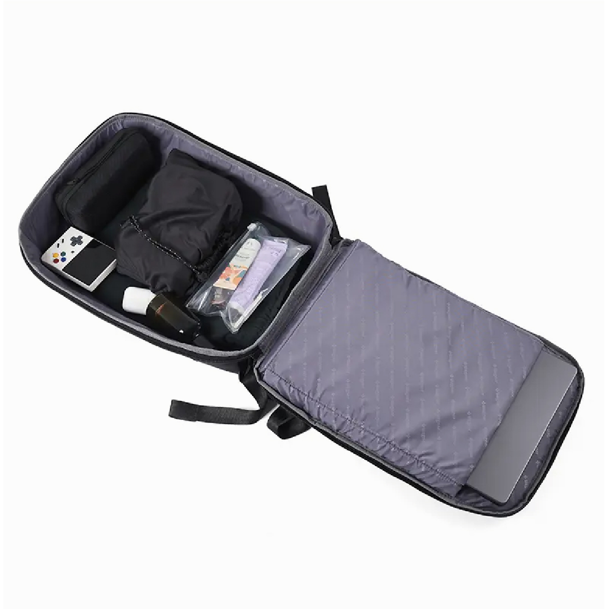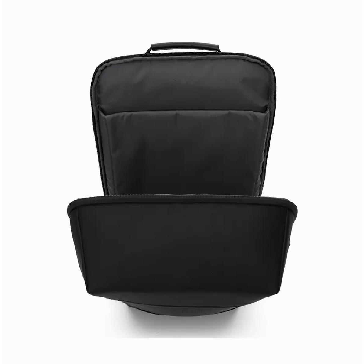 Mochila con diseño minimalista confeccionada en poliéster 210D. Cuenta con compartimiento principal con una apertura de 180°, espalda acolchada, correas regulables y un espacio en su interior para la PC (15,6″). Incluye cinta para ser transportada junto con valija carry on. Capacidad: 17.5 Litros