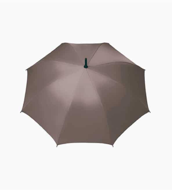 Paraguas confeccionado en Pongee 190T de alta resistencia, impermeabilidad y calidad. Posee un robusto marco de 8 varillas de apertura automática, realizado con un material exclusivo que combina fibra de vidrio y plástico super ligero que le brinda durabilidad y no atrae rayos. Mango de plástico cubierto con goma, diseño anatómico para un agarre cómodo y no deslizante en condiciones de humedad. Copa de Ø 105 cm. Caña de 83 cm. Colores varios.