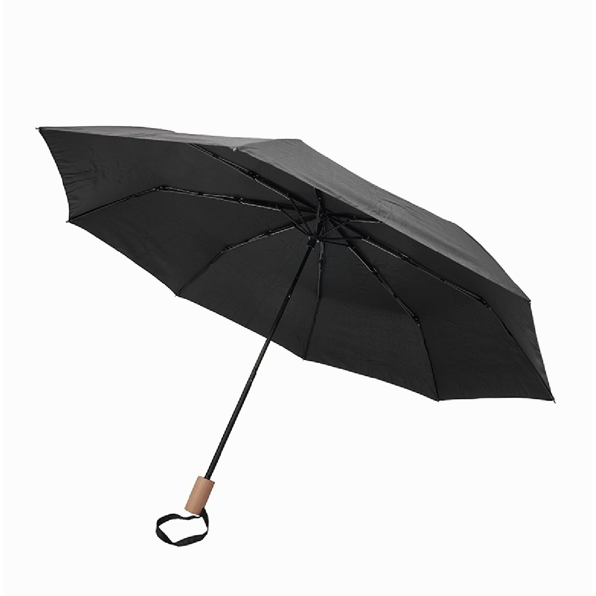 | Paraguas fabricado en 100% rPET (PET reciclado), con varillas de fibra de vidrio y mango de madera con elástico para colgar. Se pliega en 3 secciones y es resistente al viento. Cuenta con apertura y cierre automático, y viene con una funda a color con etiqueta "rPet". Sus medidas son de ø99 x 28,5 cm |