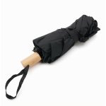 Paraguas practico con funda. El paraguas Rainy esta fabricado con paneles de RPET Pongee 190T fabric, con costillas de metal y fibra de vidrio. Su agarre esta diseñado para que sea cómodo y elegante con un agarre de madera. Cuenta con una funda propia y una cinta de agarre en el mango. Ideal para tener a mano en días lluviosos ya que es pequeño y fácil de llevar. Medidas: Altura:60 cm- Longitud:6 cm – Ancho:95 cm Peso: 270 g